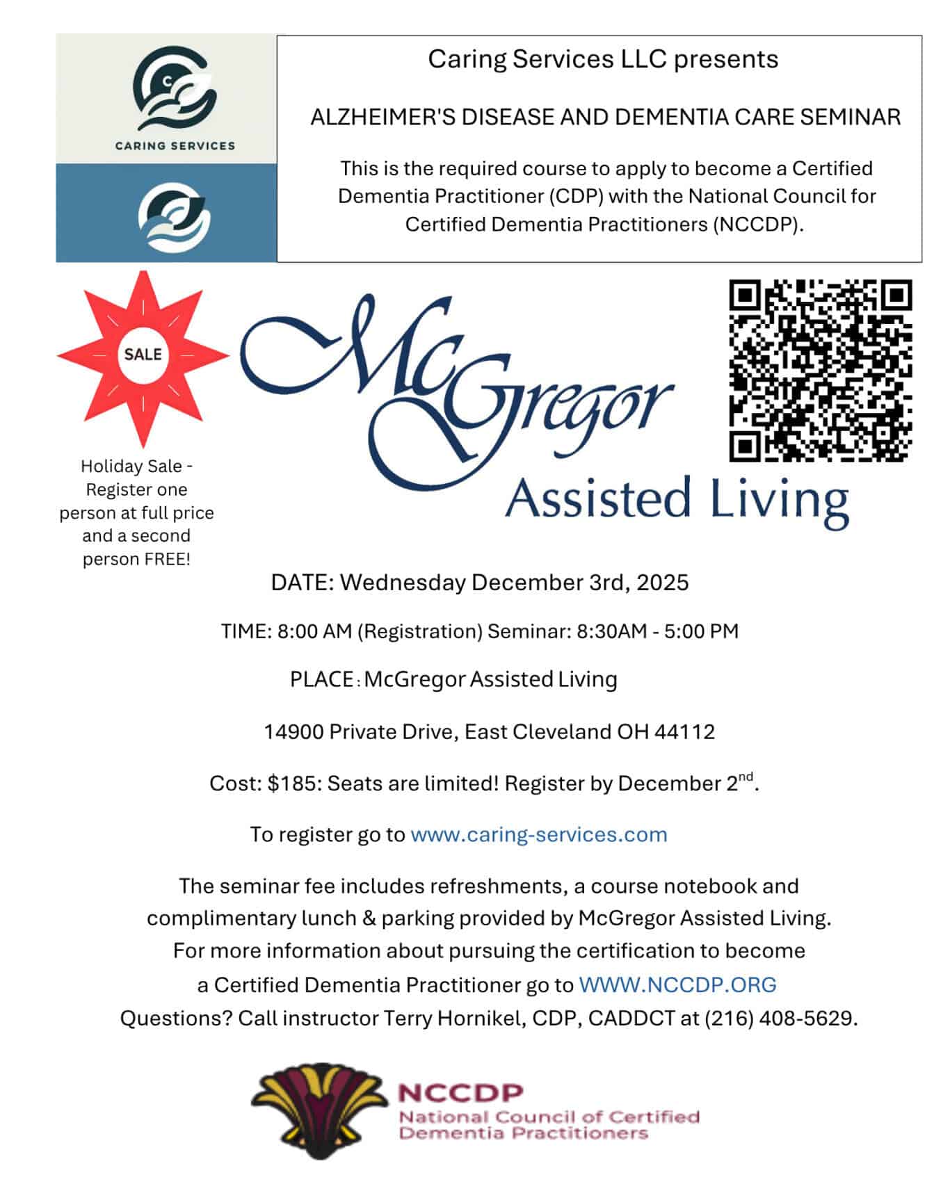 Refreshments, course materials, complimentary lunch, and parking are included courtesy of McGregor Assisted Living.